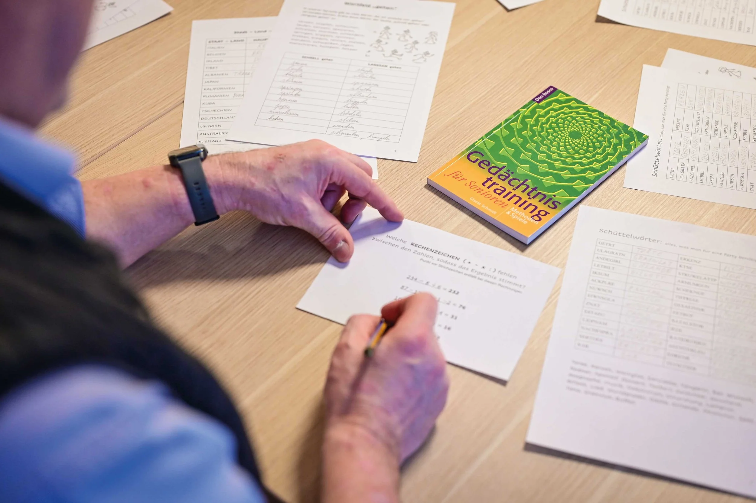 Andrea Kirchdorfer vereint ihre bisherige Gruppe und die Turngruppe unter „Mach mit, bleib fit“. Denn das Repertoire des Projektes ist groß: Kreative Arbeiten mit Papier und Farben, Schreiben, Falten, Kleben, Kartenspiele und Arbeitsblätter stehen ebenfalls auf dem Programm im betreubaren Wohnen. Alle zwei bis drei Monate wird gemeinsam gesungen – manchmal im Aufenthaltsraum, manchmal im Gasthaus. Auch Faschingsfeiern oder Quartalsgeburtstage stehen am Programm. Die Biographiearbeit bleibt ein wichtiger Bestandteil. Angeregt durch Karten oder Würfeln, erzählen die Teilnehmerinnen und Teilnehmer von früheren Erlebnissen. Doch wie kommt die 67-Jährige auf all ihre Ideen? In der Ausbildung zur Trainerin erhielt Kirchdorfer einen „Koffer voller Ideen“, die sie gemeinsam mit den anderen Auszubildenden ausprobierte. Neben der körperlichen und geistigen Fitness spielt auch der soziale Aspekt eine Rolle. Durch das regelmäßige Zusammentreffen reißt der Kontakt zu anderen Menschen nicht ab.