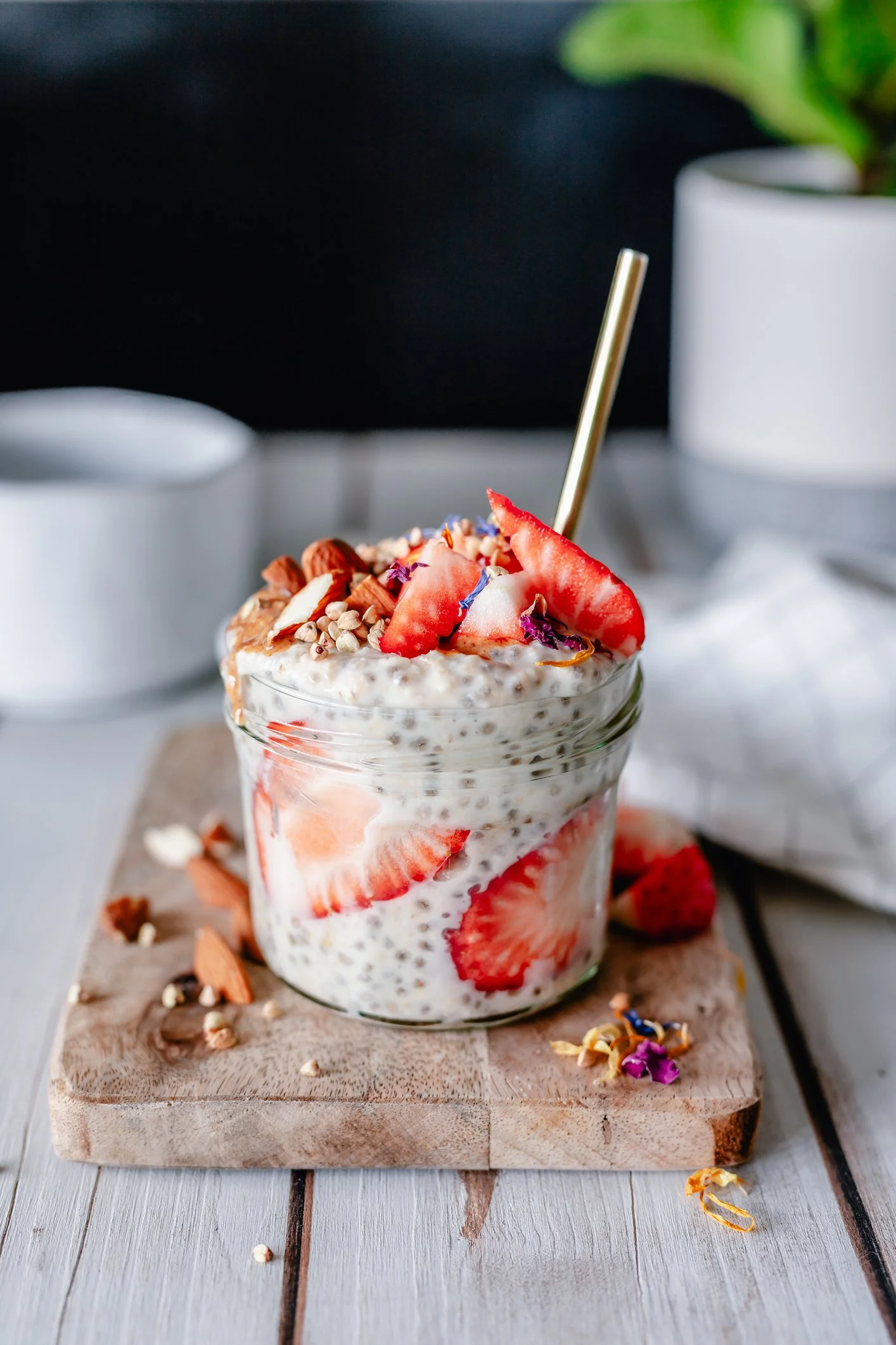 Overnight Oats mit Chiasamen und Erdbeeren